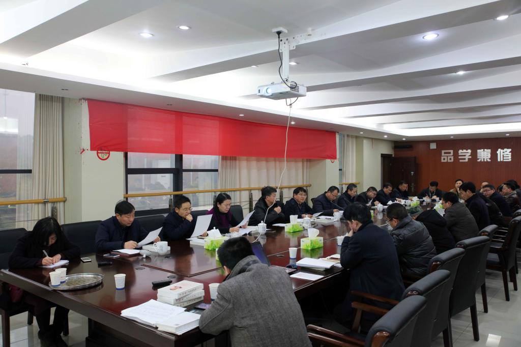 (本网讯)1月18日上午,我校党委中心组(扩大)2018年第一次集中学习会在办公楼一会议室举行。会议重点学习了十九大召开以来习近平总书记系列重要讲话精神。会议由党委书记罗成翼主持。党委中心组全体成员、各二级单位党委(党总支)书记参加了学习。