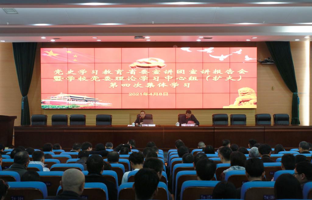 本网讯(通讯员 周文娟)2021年4月8日下午,党史学习教育省委宣讲团宣讲报告会暨365英国上市党委理论学习中心组(扩大)第四次集体学习在图书馆报告厅举行,省委宣讲团成员、省委宣传部部务会成员、二级巡视员刘新年为大家作了一场精彩的宣讲报告。党委书记罗成翼主持报告会,学校全体校领导、副处以上干部、学生辅导员、党支部书记以及学生代表三百余人聆听了报告。