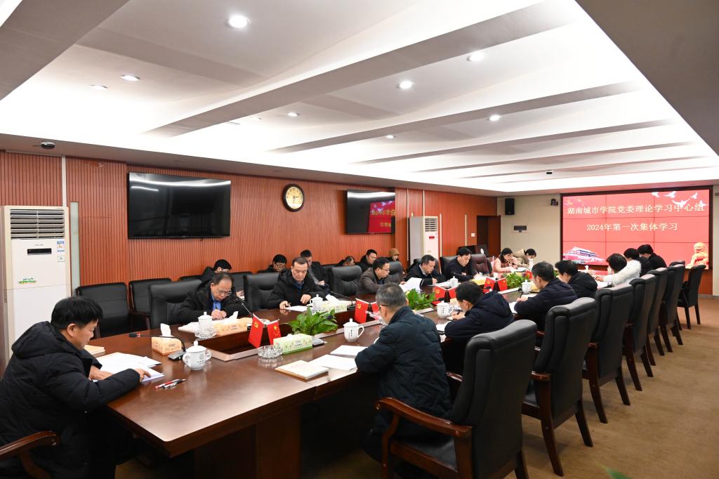 本网讯(通讯员 蔡润晨)1月18日,学校在办公楼一会议室举行党委理论学习中心组2024年第一次集体学习。校党委书记汤放华主持会议。