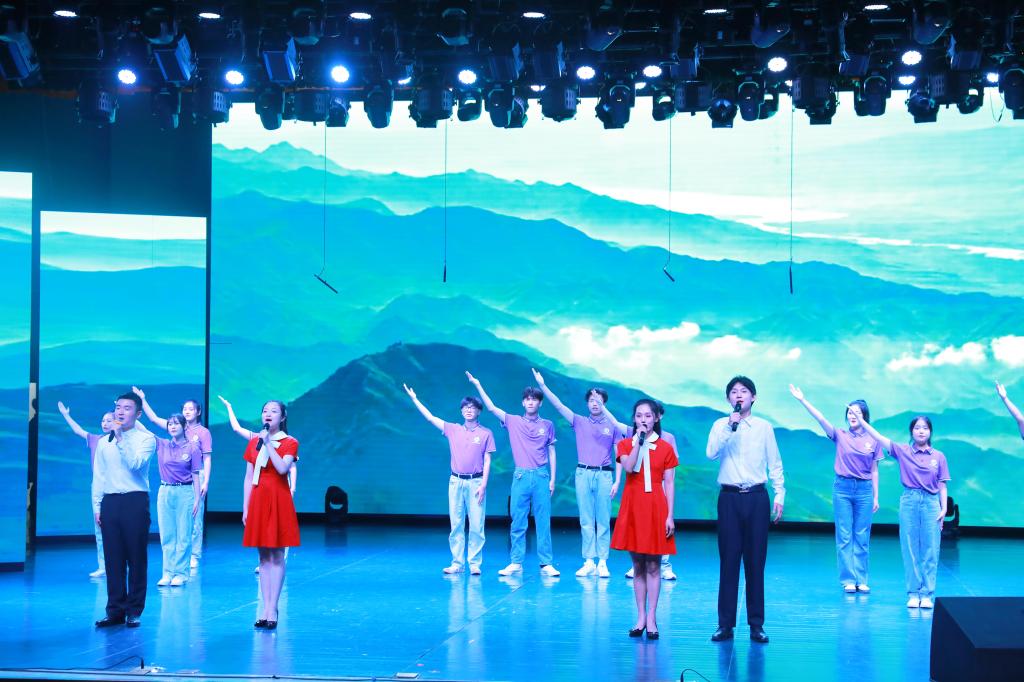 活动伊始,全场肃立,共唱国歌。随后,一曲震撼人心的器乐合奏《龙腾虎跃》拉开演出序幕,现场观众在鼓乐合奏中感受到了神州大地欣欣向荣、龙腾虎跃的繁荣景象。接下来的彝族舞蹈《守护》以舞蹈艺术方式向红色经典致敬,展现了彝族人民与红军诚挚的革命情谊。舞剧《天路》、歌曲《向往》《如愿》《春天的芭蕾》《领航》一一亮相,充分表达了青年学子对祖国的无限热爱,在艺术中学思想、强党性。舞蹈《云梦情》、歌曲《八百里洞庭美如画》描绘了江南的风光秀丽,展示人与自然和谐共生的美好生活。京剧折子戏《武家坡》展现了中国戏曲艺术的独特魅力;朗诵《奋斗青春,城院有我》体现了城院学子青春奋斗的决心,鼓励当代青年积极融入新时代奋进的浪潮,勇毅前行。演出在歌舞《美丽中国》中徐徐落下帷幕。